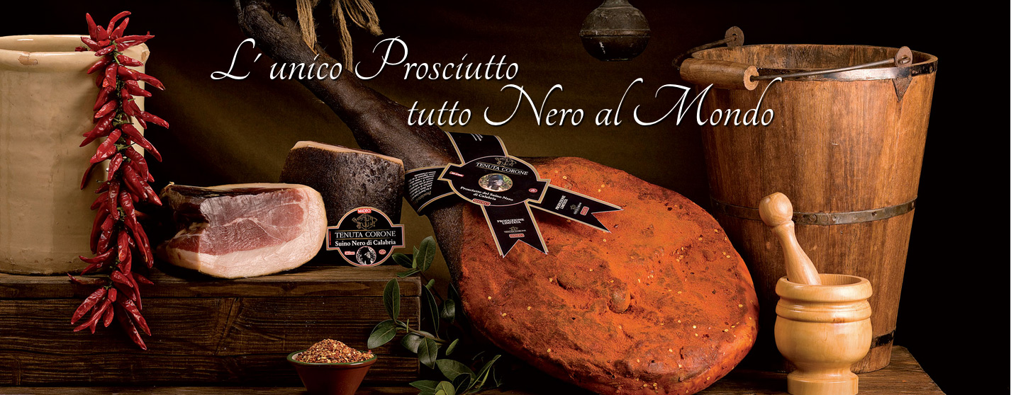 I salumi neri di Calabria: prosciutto, salsicce, salamini, braciole e salumi tipici calabresi, come la Soppressata, il Capocollo o la Pancetta di Calabria.