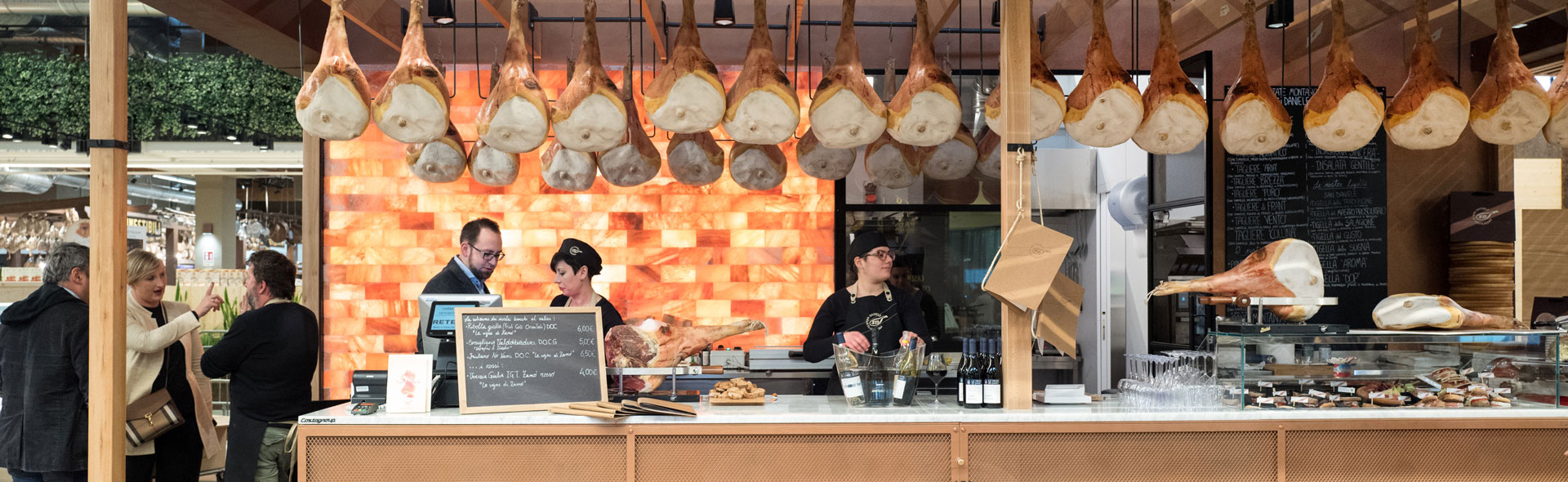 Prosciutto di San Daniele DOP, altri prodotti artigianali tipici friulani e un vasto assortimento di vini della regione. Inoltre degustazioni guidate, lezioni di taglio e incontri per conoscere come nasce il Prosciutto di San Daniele.